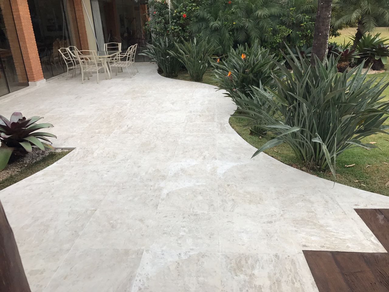 Acabamento polido: É o acabamento mais comum para o mármore travertino. Ele oferece uma superfície lisa, brilhante e refletiva, realçando as cores e os padrões naturais da pedra. O acabamento polido também facilita a limpeza e manutenção do piso.